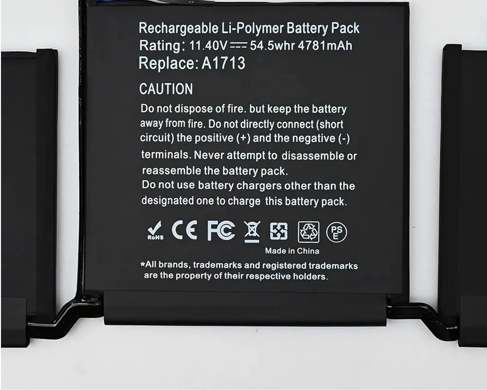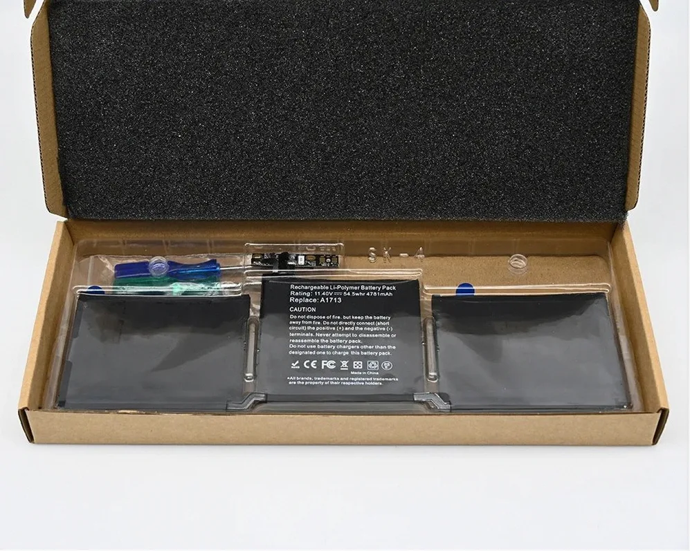 The Macobook A1708 battery powers MacBook Pro 13″ laptops with precision and reliability. This 11.4V 54.5Wh Li-polymer battery is designed for A1708 and A1713 model configurations. When your MacBook Pro battery no longer holds a charge or shows signs of degradation, this high-quality replacement restores your laptop’s mobility. Built with premium Li-polymer cells, it delivers consistent power for demanding workflows and daily computing tasks.