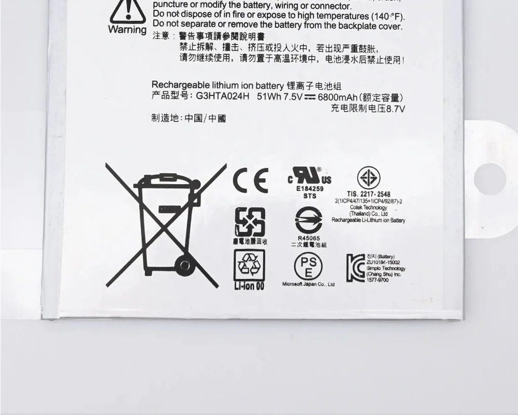 Upgrade your tablet’s performance with the Microsoft G3HTA024H battery for Surface Pro devices. This 7.5V 51Wh 4-cell Li-polymer battery delivers 6800mAh capacity to restore your tablet’s full runtime potential. When your current battery no longer holds a proper charge, this replacement brings your Surface Pro back to peak performance. The high-quality cells provide reliable power for all-day productivity and entertainment.