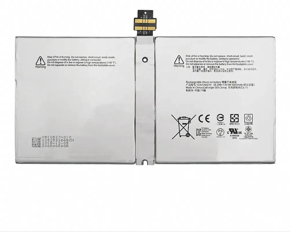 Power up your productivity with the Microsoft G3HTA027H replacement battery, engineered for fast charging and reliable performance in Surface Book laptops. This 7.5V 38.2Wh 2-cell Li-ion battery delivers consistent power output to keep your device running at peak performance. Designed for users who demand quick charging capabilities and dependable runtime, this replacement battery restores your laptop’s mobile productivity. Compatible with Surface Book models, it provides the fast-charging technology you need for uninterrupted workflow.