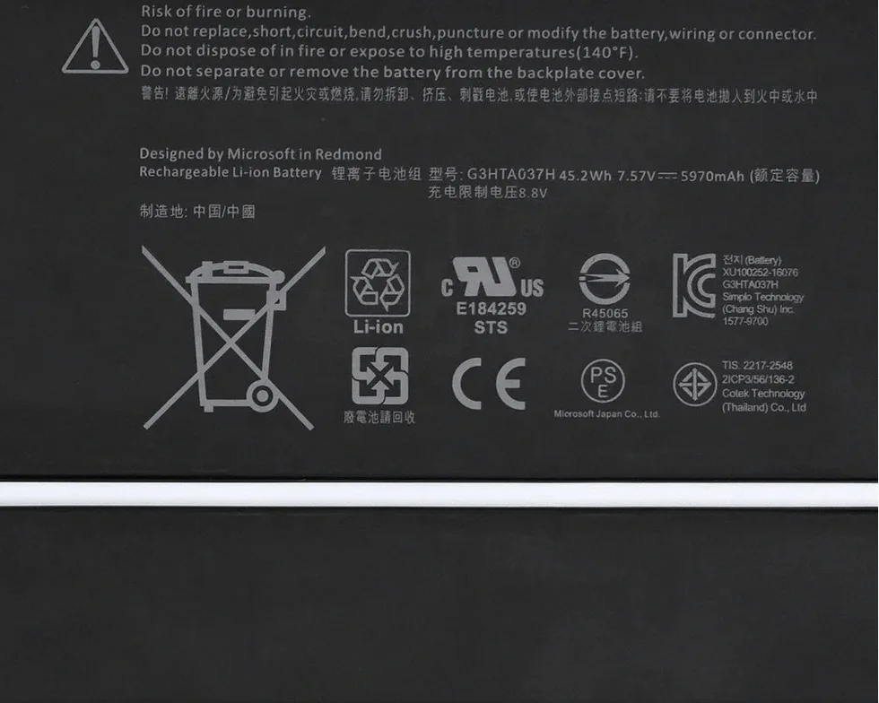 The Microsoft G3HTA037H serves as a direct replacement battery for Surface Pro 4 tablets experiencing power issues or diminished battery performance. This 7.58V 45.8Wh Li-polymer battery features a 4-cell design with 6041mAh capacity to restore your tablet’s mobility. The rechargeable battery integrates seamlessly with Surface Pro 4 devices, delivering reliable power for productivity and entertainment tasks. Professional users and students alike depend on this battery solution to keep their Surface Pro 4 tablets operational throughout demanding workdays.