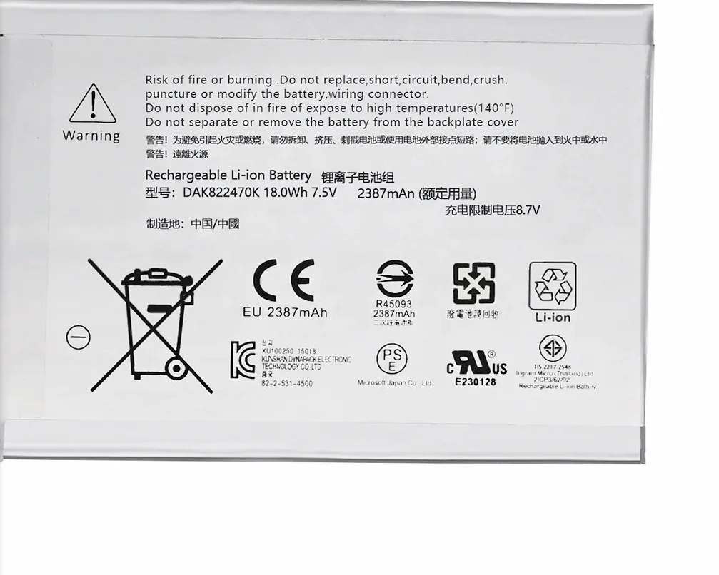 Replacement battery for Microsoft Surface 13.5″ 2-in-1 laptops and tablets.