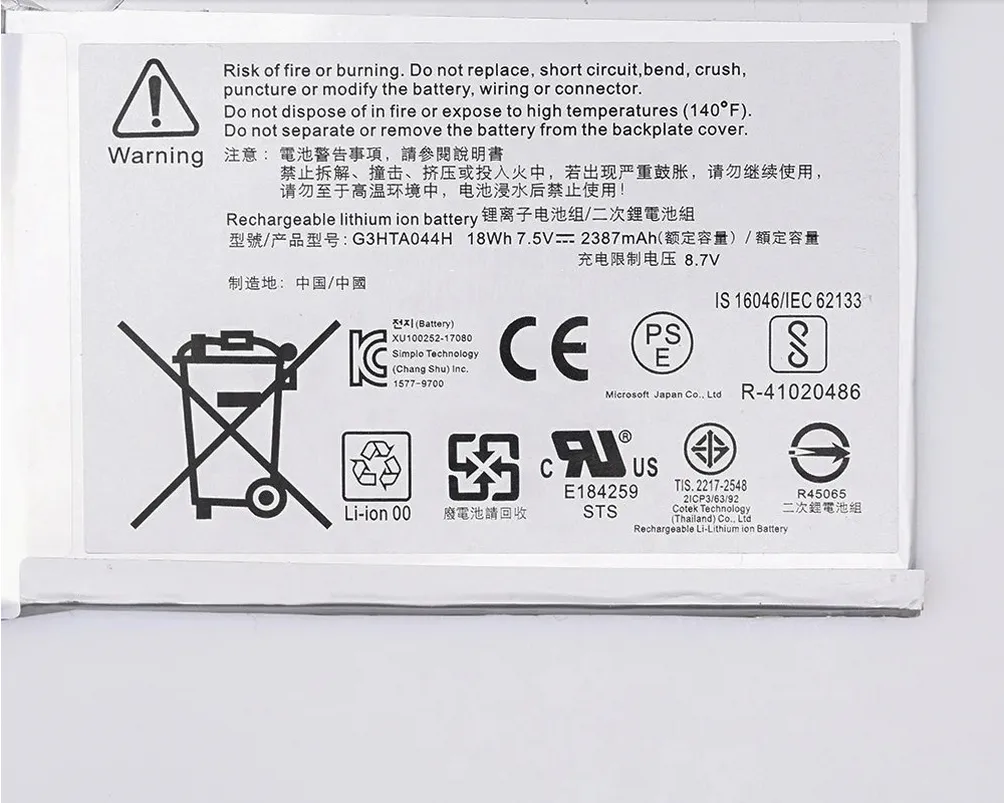 Restore your Microsoft Surface Pro to full performance with the G3HTA044H replacement battery. This 7.5V 18Wh 2-cell Li-ion battery delivers the runtime you need for productive work sessions and entertainment. When your device no longer holds a charge like it used to, this high-quality replacement brings back the portable freedom that makes Surface Pro tablets so valuable. The 2387mAh capacity ensures reliable power for your Microsoft Surface Pro, letting you work unplugged with confidence once again.