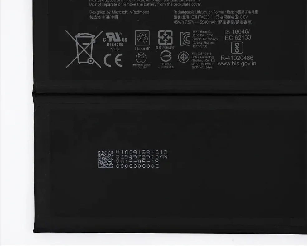 Replacement battery for Microsoft Surface Pro 5 tablets.