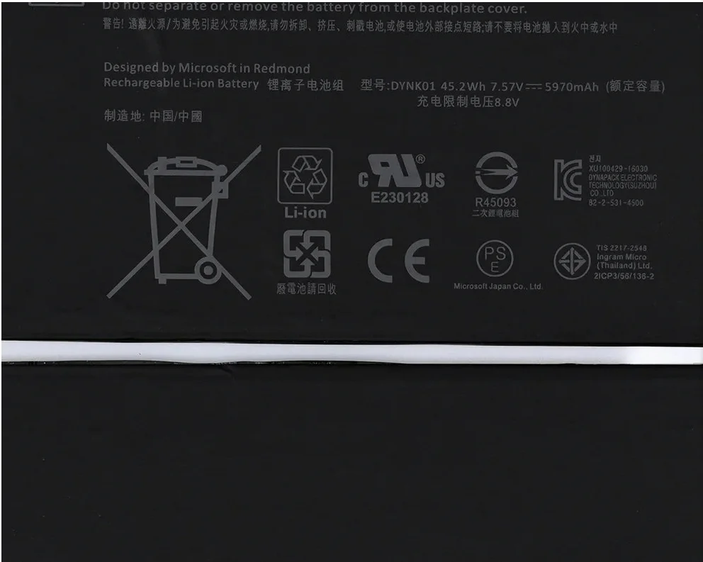 Replacement battery for Microsoft Surface laptops.