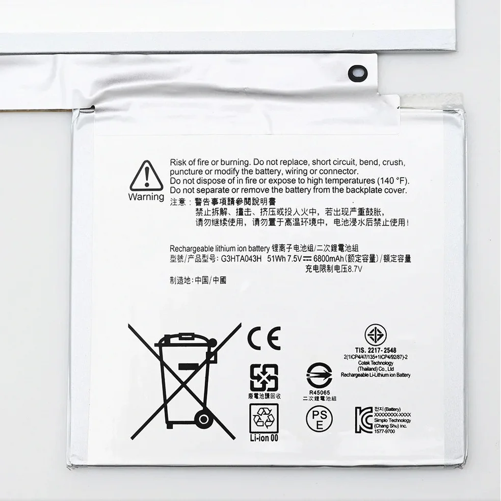 The Microsoft Surface G3HTA043H battery powers Surface Pro 7 and Surface Pro 7+ tablets with reliable 7.5V performance and 51Wh capacity. This 4-Cell Li-ion battery delivers 6800mAh of power to keep your Surface device running throughout your workday. Designed for seamless compatibility with Surface Pro 7 series tablets, this battery restores full mobility to your device when the internal battery begins to lose capacity over time.