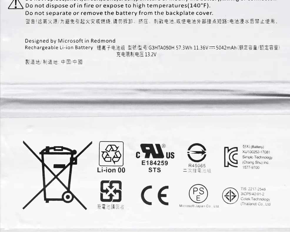 Microsoft g3hta061h-wholesales-5702mah-7-57v-lithium-ion-batteries-g3h replacement laptop battery
