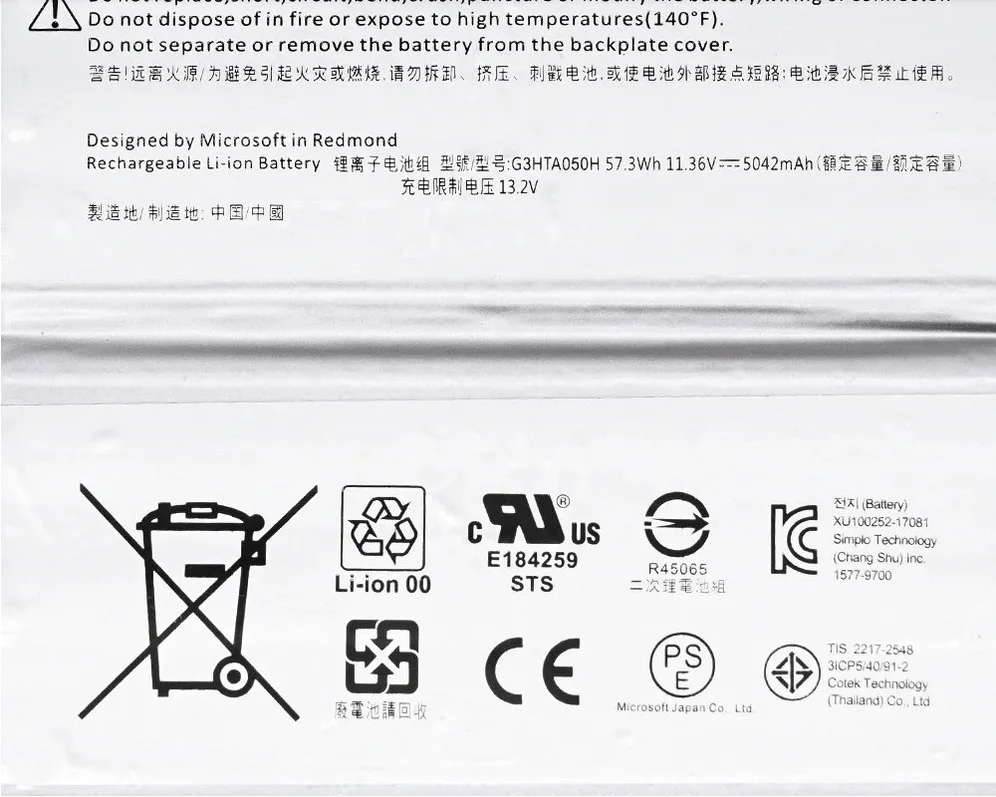 The Microsoft Surface G3HTA050H delivers exceptional fast-charging capabilities and reliable power for your Surface keyboard. This high-performance 11.36V 57.3Wh 4-Cell Li-ion battery features advanced charging technology that gets you back to productivity quickly. Built with premium lithium-ion cells, this battery provides consistent power output and excellent charge retention. Whether you’re working through long sessions or need dependable backup power, this 5042mAh battery delivers the performance your Surface keyboard demands.