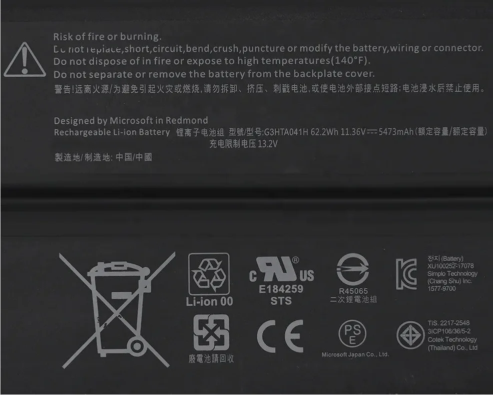 Replacement battery for Microsoft Surface keyboard attachments with advanced Li-polymer technology.