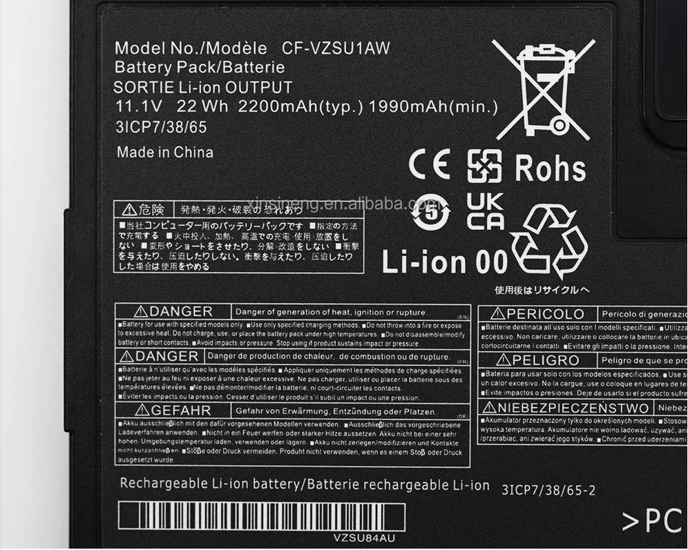 The 11.1V and 22Wh specifications make the Panasonic CF-VZSU1AW the perfect power solution for your Toughbook CF-33 rugged tablet. This 3-cell Li-polymer battery delivers reliable performance for demanding field applications where power interruption isn’t an option. Compatible with multiple variants including the CF-33AEHFATG, CF-33AEHFZTG, and CF-33LEHFAT3 models. The 2200mAh capacity provides consistent power for your mobile computing needs in harsh environments.