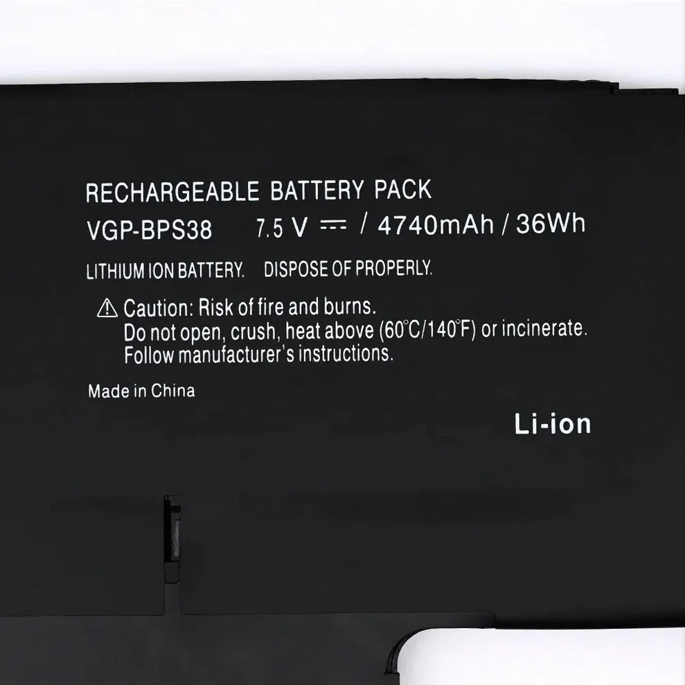 | Compatible Part Numbers | BPS38, SVP132190X, SVP13219PT, SVP13219PTB, SVP1321Y9EB, SVP1322M9R, VGP-BPS38, VGP-BPSE38 |
