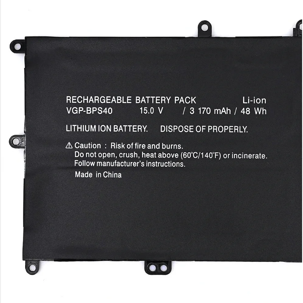 Compatible Part Numbers14A, 15A, BPS26, BPS40, PCG-61A12L, PCG-61A13L, PCG-61A14L, PCG-71713L, PCG-71912L, PCG-71913L, SVF14A, SVF14A14CXP, SVF14A14CXS, SVF14A15CXB, SVF14A15CXP, SVF14A15CXS(11.1V, SVF14AC1QL, SVF14AC1QU, SVF14N, SVF14N11CXB, SVF14N13CXB, SVF14N15CDS, SVF14N16CW, SVF14N26CW, SVF14NA1UL, SVF15A, SVF15A16CXB, SVF15N, SVF15N13CW, SVF15N17CX, SVF15N17CXB, SVF15N17SAB, SVF15N18PW, SVF15N18PXB, SVF15N1ACG, SVF15N23CGS, SVF15N26CXB, SVF15N27CGB, SVF15N28PXB, SVF15N2ACGP, SVF15N2L2E, SVF15NA1GL, SVF15NA1GU, SVF15NB1GL, SVF15NB1GU, VGP-BPL26, VGP-BPS26, VGP-BPS26A, VGP-BPS40, VGPBPS40